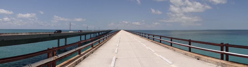 Het was haast jammer om hier weg te gaan, maar we wilden toch verder en liepen over het zand naar het water. We liepen hier een poosje rond en toen zagen we vier manatees zwemmen in het water, vlak bij het strand. Ze kwamen af en toe even boven water om adem te halen. We vonden het heel bijzonder om op deze plek de manatees te zien. Ze zwommen eigenlijk maar een paar meter van ons vandaan. Op een gegeven moment gingen ze weer weg en wij zijn toen ook weer de auto ingegaan om een leuk picknickplekje te zoeken. Die vonden we een eindje verderop en daar zijn we gaan picknicken. Ook hier weer met uitzicht op de zee, die er net zo mooi blauw uitzag als het water toen we naar de Keys reden twee weken geleden. Na de lunch reden we van het eiland af. We zagen dat er een grote vispier aan de overkant lag en we hadden het vermoeden dat dat een oude spoorweg was. Eerst konden we hem niet vinden, maar kwamen we wel bij een ander leuk plaatsje terecht met allemaal schattige gekleurde huisjes. We keken daar even rond en zagen vrij snel daarna de toegang tot de pier.